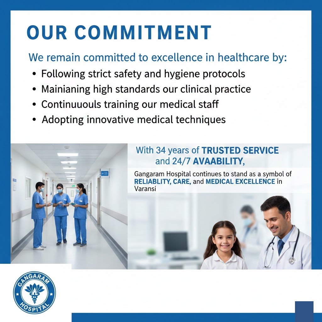 With 34 years of trusted service and 24/7 availability, Gangaram Hospital continues to stand as a symbol of reliability, care, and medical excellence in Varanasi.