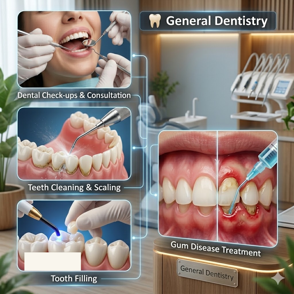Good oral health is essential for overall well-being. Regular dental check-ups help prevent serious problems like cavities, gum disease, and tooth loss. Our team also provides guidance on: