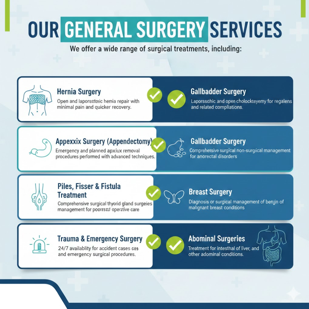 At Gangaram Hospital, our Department of General Surgery provides advanced, safe, and effective surgical care with a strong focus on patient safety and faster recovery. With 34 years of medical excellence, we combine experienced surgeons, modern operation theatres, and advanced surgical techniques to deliver the best possible outcomes.