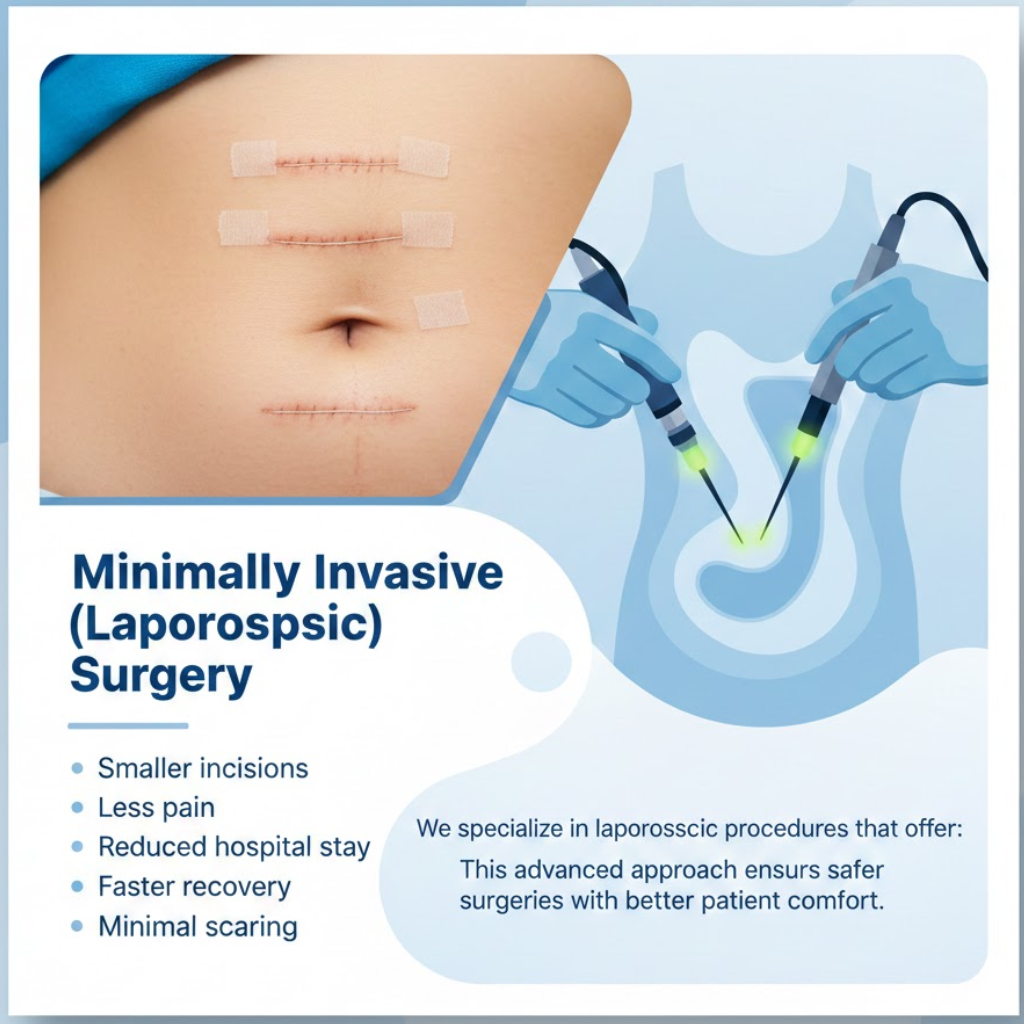 Open and laparoscopic hernia repair with minimal pain and quicker recovery.