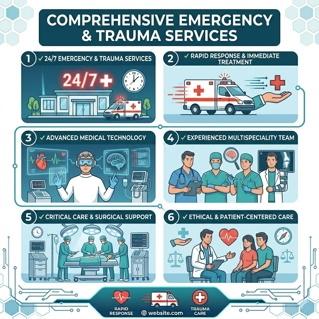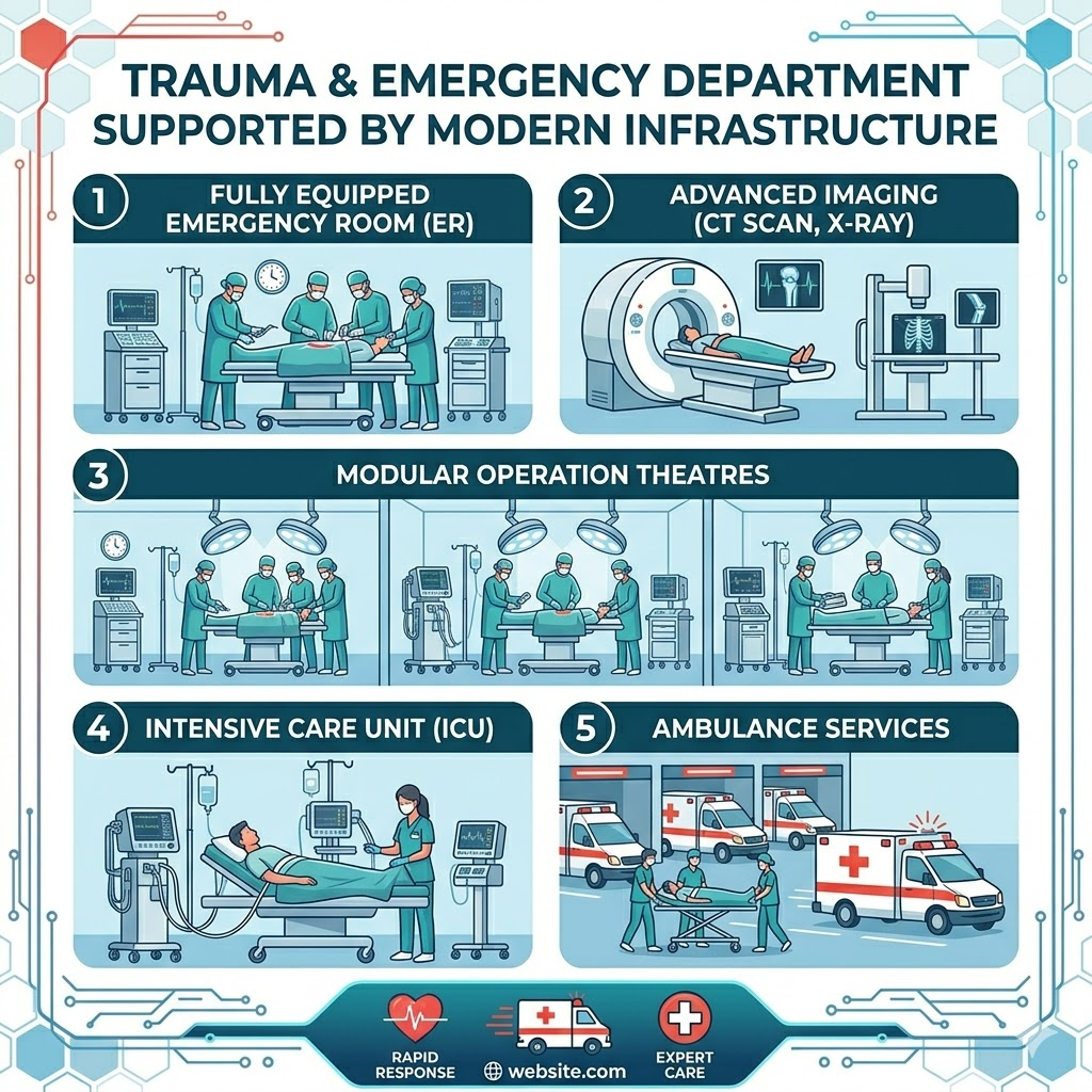 Our Trauma & Emergency Department is supported by modern infrastructure, including: